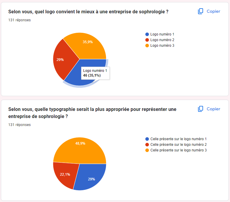 Pour ce faire, nous avons fait découvrir à un échantillon de 131 individus le concept de la sophrologie via un texte réalisé par Elisabete; puis les personnes avaient le choix entre trois logos differents afin de choisir celui qui correspondait le plus à la sophrologie.